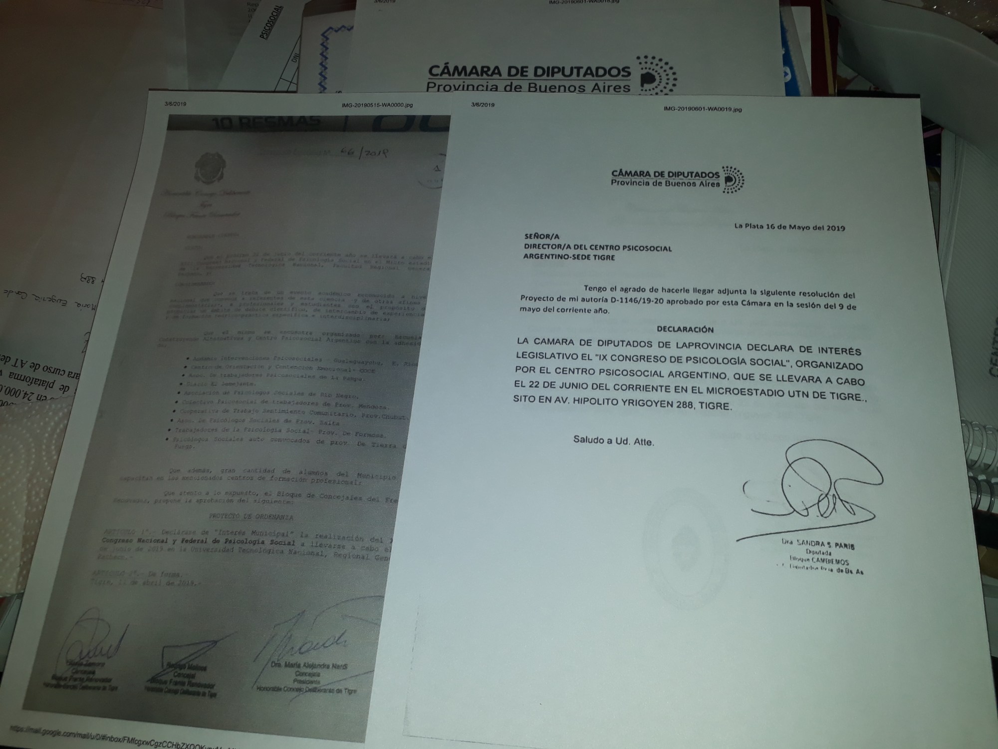 ❤Un gran logro para la Psicología Social de Argentina, el IX Congreso Nacional y Federal de Todos/as es Declarado de Interés Provincial por la Honorable Cámara de Diputados de la Provincia de Buenos Aires, y 🍀Declarado de interés Municipal por el Honorable Concejo Deliberante del partido de Tigre.