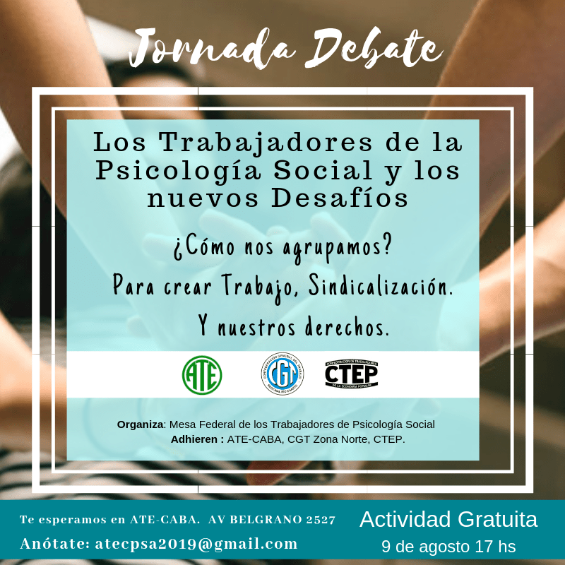 🍀Organiza: Mesa Federal de los Trabajadores de Psicología Social.🍀Adhieren ATE-CABA, CGT Zona Norte, CTEP.