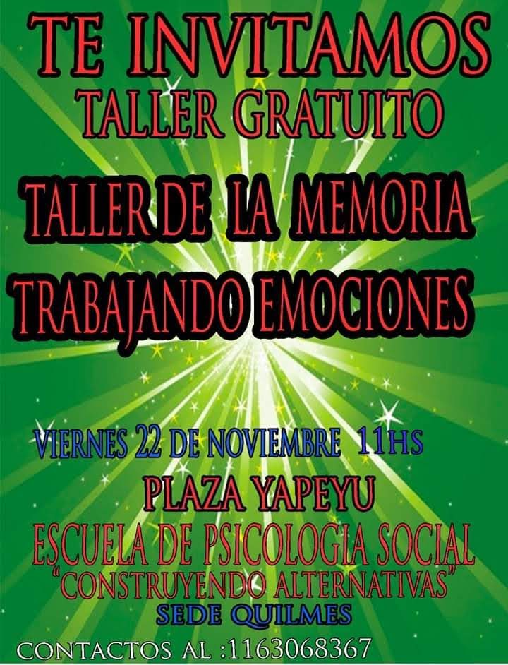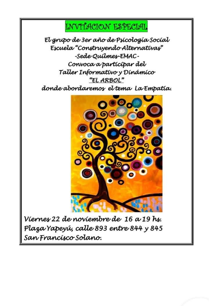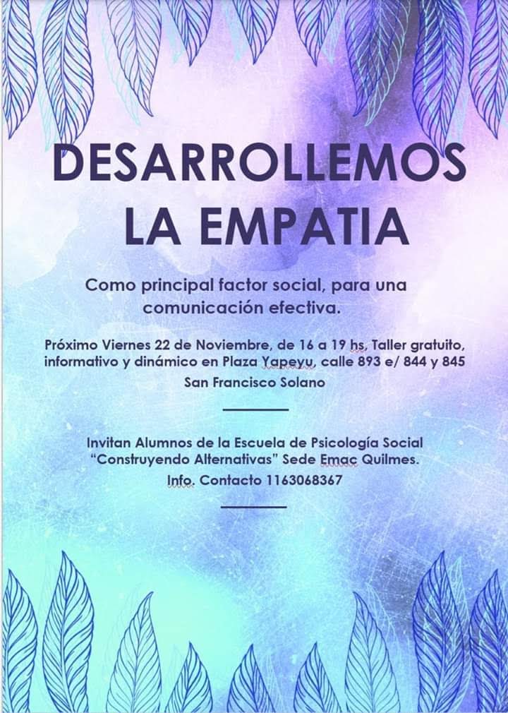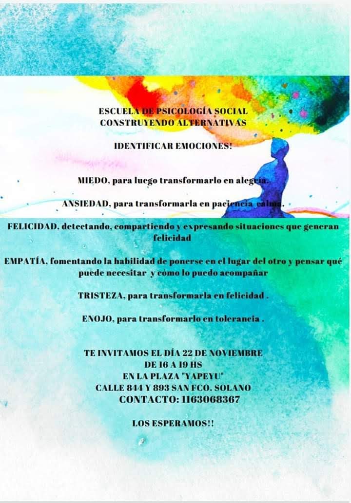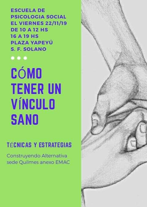 Desde nuestra humilde posición tenemos el objetivo de sumar herramientas vinculares a la comunidad a través de talleres y charlas que tendrán lugar en simultaneo durante la mañana y la tarde en San Francisco Solano, Quilmes, Plaza Yapeyú.