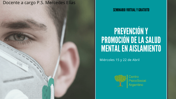 Sede San Miguel de Centro PsicoSocial Argentino nos propone trabajar sobre la Prevención y Promoción de la Salud Mental en Aislamiento a cargo de la docente Mercedes Elías – Ella es Psicóloga Social, Acompañante Terapéutica y Operadora Preventiva en Salud Mental.