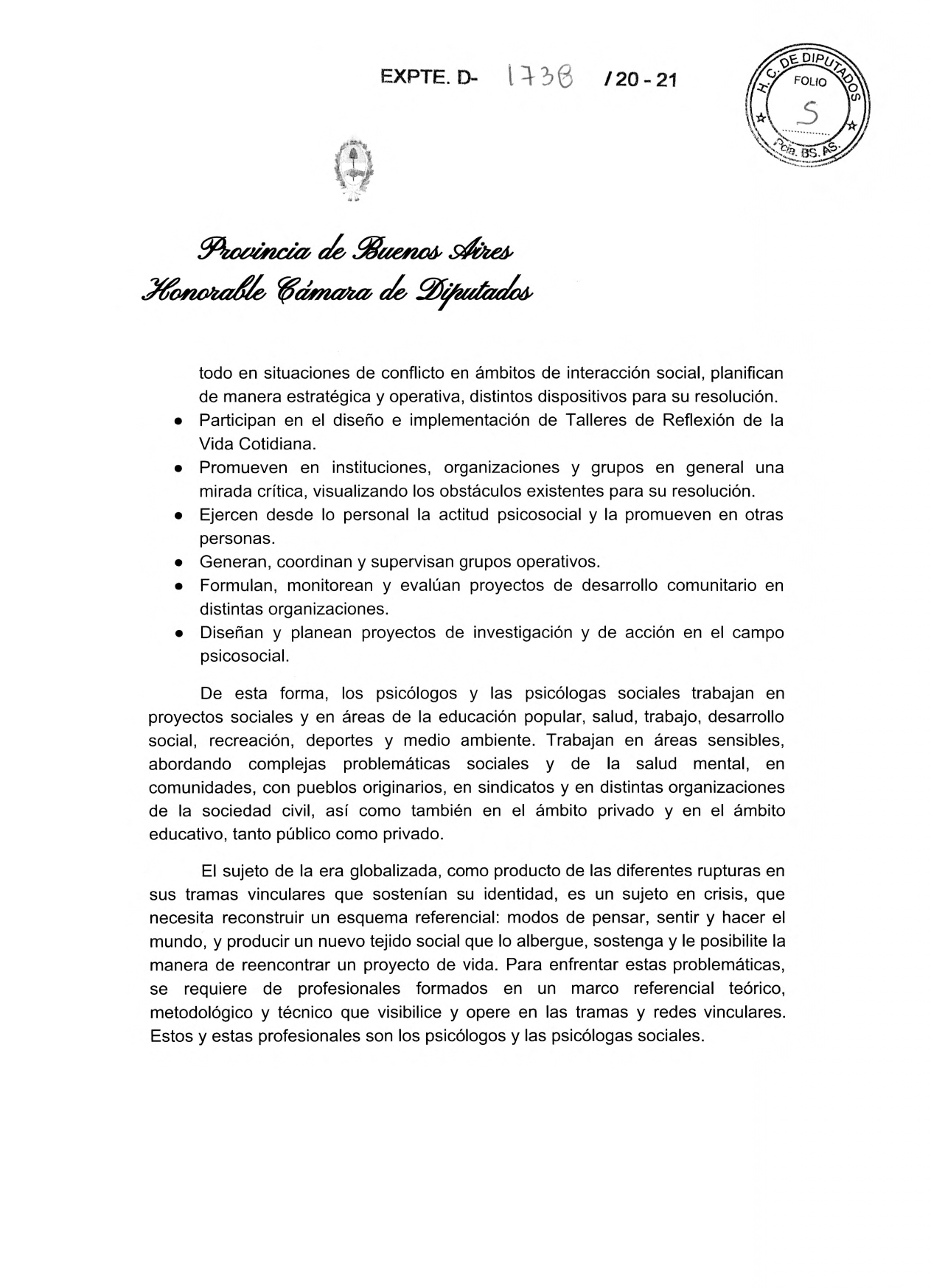 1. !!!! Grata noticia seria QUE LA HONORABLE CÁMARA DE SENADORES Y DIPUTADOS APRUEBE DAR MEDIA SANCIÓN PARA una salida laboral, para los miles de Psicologos Sociales que trabajan de cualquier actividad , menos de su Profesion, Perdon solo estoy haciendo uso de mi derecho de opinar. Espero que no lo borren.