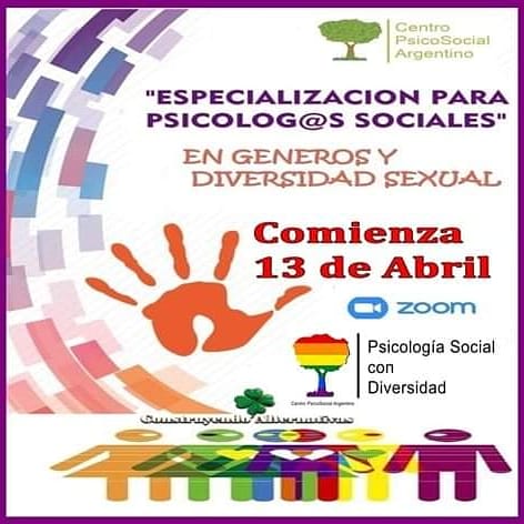 Especialización para Psicólogas Sociales en Géneros y Diversidad Sexual. Pensada para entender los conceptos de la Diversidad de Géneros/sexual desde una perspectiva Pichoniana.
