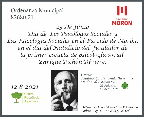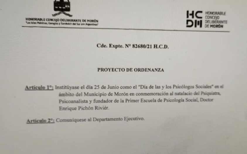 🍀EL HCD de la Ciudad de MORON, por Unanimidad reafirma y Aprueba de 25 de Junio El día de los Psicólogos y las Psicólogas Sociales.