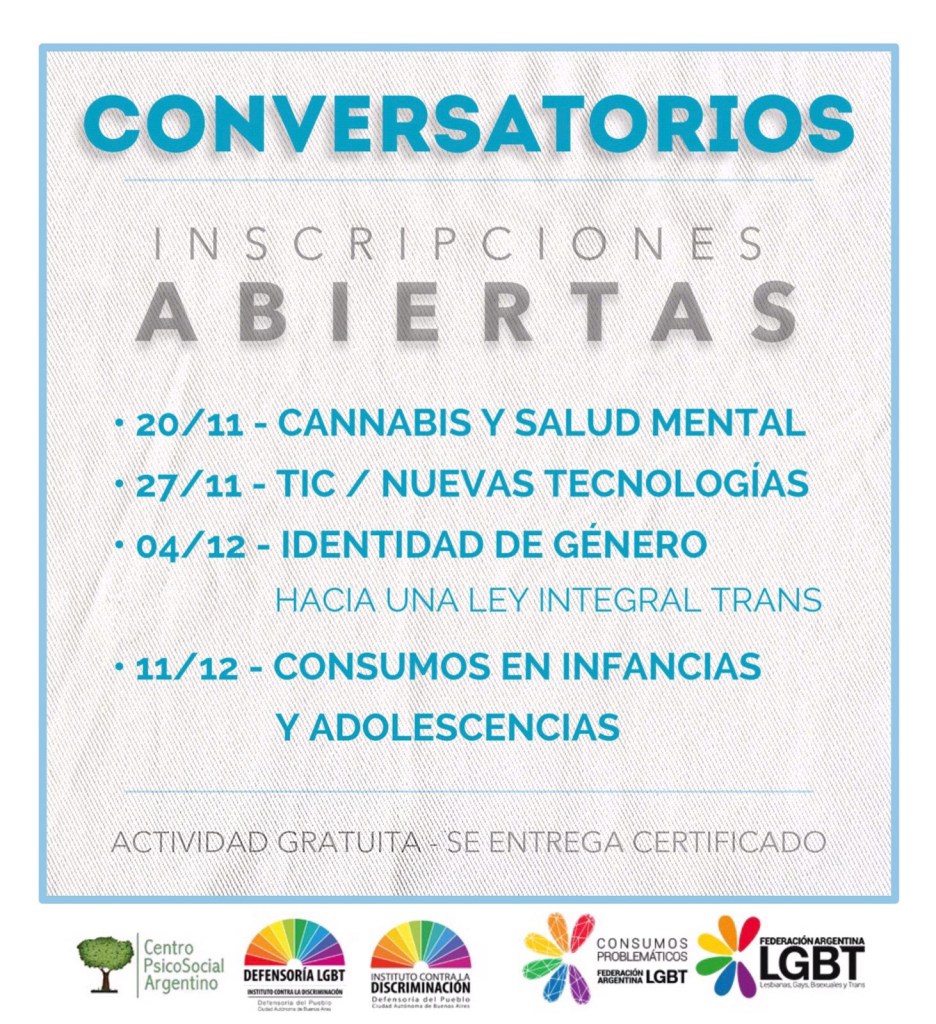 Desde la Secretaría de abordaje integral de los consumos problemáticos de la Federación Argentina LGBT, junto al Centro PsicoSocial Argentino, el Instituto contra la Discriminación y la Defensoría LGBT, queremos dar un cierre de lujo a este año 2021, en el cual tuvimos más de 45.000 personas participando de nuestras actividades de formación. Por ello, les invitamos a poder participar de los últimos cinco conversatorios, con invitades de LUJO.