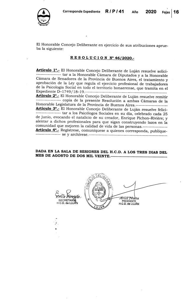 El pasado 5 de Julio por unanimidad el Honorable Consejo de Deliberante de Lujan.
