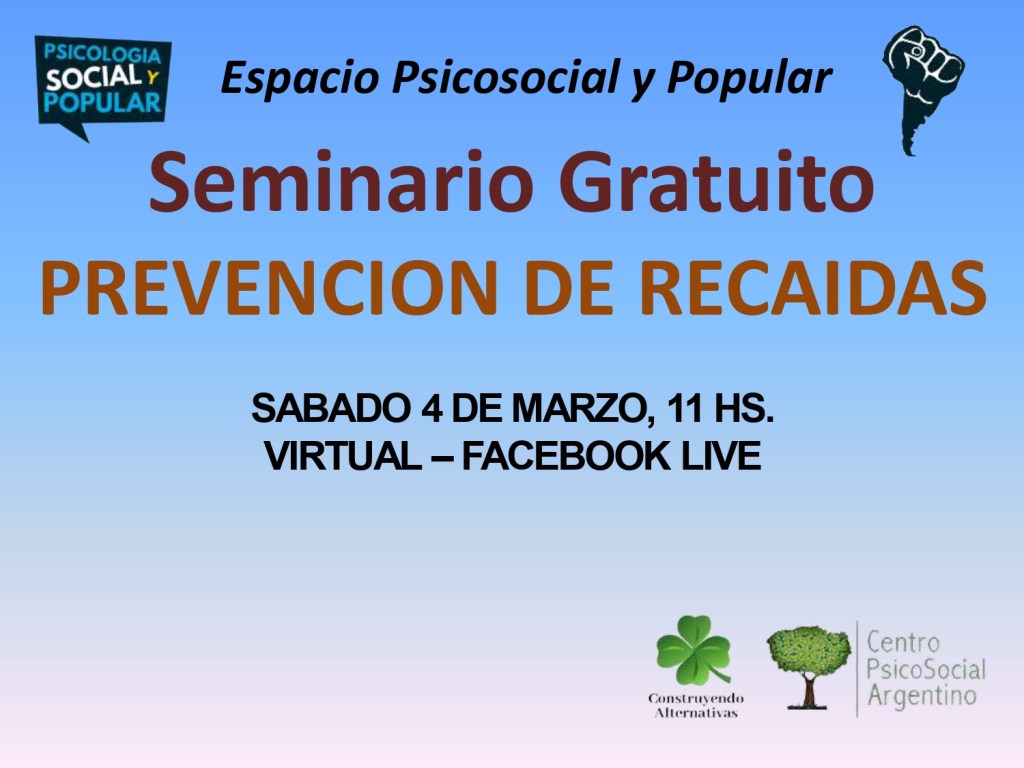 Seminario GRATUITO, Estudiantes, Psicolog@s Sociales, Personal de Salud y Público en General.