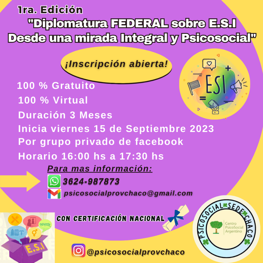Diplomatura FEDERAL sobre E.S.I desde una Mirada Integral y Psicosocial.
