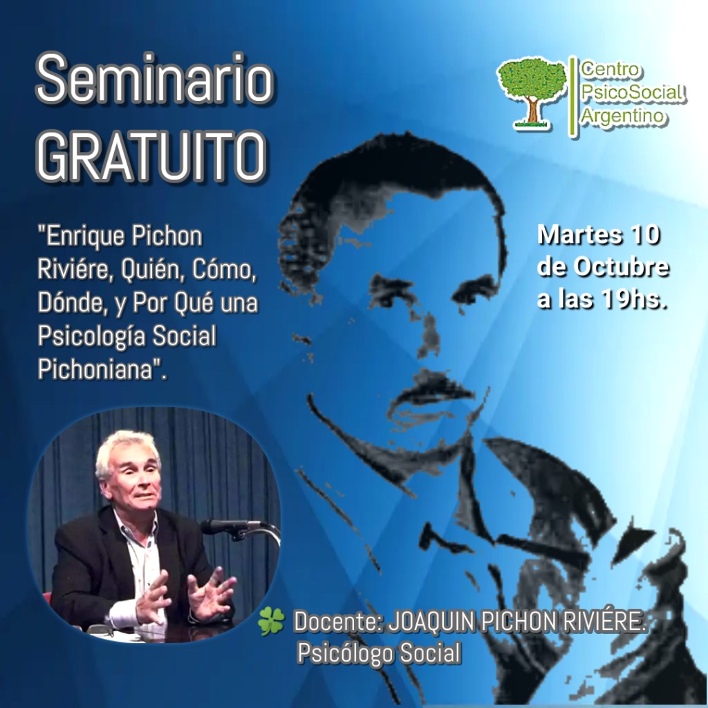 Inicio: 10 de Octubre 19hs. Docente: JOAQUIN PICHON RIVIERE. Psicólogo Social