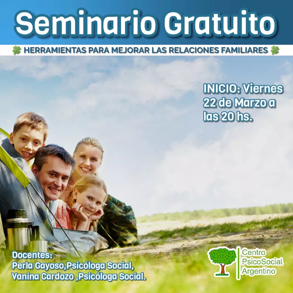 22/03/24 🍀 Seminario GRATUITO Estudiantes, Psicólogos Sociales, ATs, Publico en General.🍀HERRAMIENTAS PARA MEJORAR LAS RELACIONES FAMILIARES.