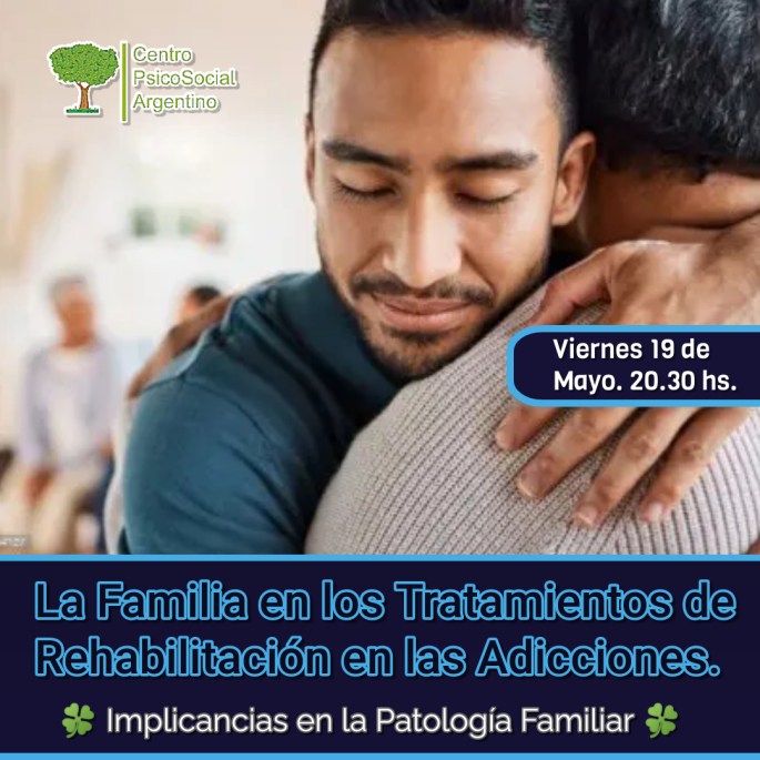 SEMINARIO GRATUITO, Estudiantes, Psicólogos Sociales, Personal de Educación, Padres, Madres, para todos/as. La Familia en los Tratamientos de Rehabilitación en las Adicciones. “Implicancias en la Patología Familiar” Inicio: Viernes 19 de Mayo 20.30 hs. Anótate Aquí: https://forms.gle/t7qVFeRiruTVGbbQ7 SE ENTRA CERTIFICADO DIGITAL. TEMARIO: JUSTIFICACIÓN CODEPENDENCIA LA TOXICIDAD FAMILIAR POSIBLES CARACTERÍSTICAS FAMILIAS ENSAMBLADAS ABORDAJE Y DISPOSITIVOS Un puente más … Sigue leyendo SEMINARIO GRATUITO: La familia en los tratamientos de recuperación de adicciones.