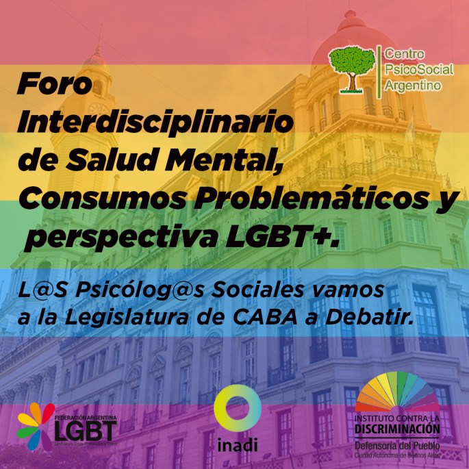 7 de Noviembre a las 15 hs. L@S Psicólog@s Sociales vamos a la Legislatura de CABA a Debatir. I Foro Interdisciplinario de Salud Mental, Consumos Problemáticos y perspectiva LGBT+. Además, lanzamos el Plan Nacional de Becas “Mariana Mia Zelaschi” a toda la Comunidad Trans, para que puedan Estudiar Psicología Social en el PAIS. Jornada gratuita … Sigue leyendo ¡A debatir!