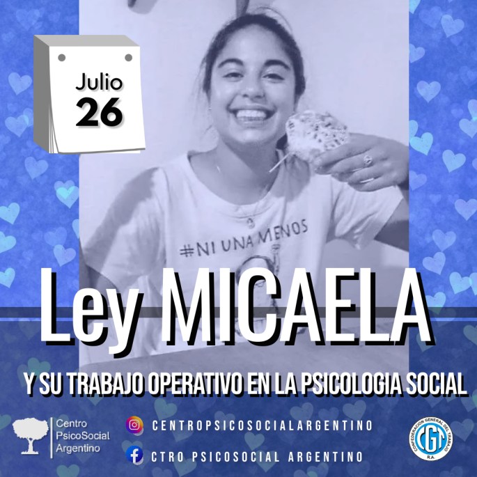 La Ley Micaela y su Trabajo operativo en la Psicología Social. INICIO Martes 26 de julio 19 hs. Docente: Dr. Guido Carera. Anotate AQUI: https://forms.gle/iJetmtNXvt1UcWw58 Se Entrega Certificado Digital. Temario: De que se trata la LEY MICELA. Ley 27499. Identificar las desigualdades de Género y elaborar estrategias Grupales Como trabajar dicha Ley en los Grupos. … Sigue leyendo La Ley Micaela y su Trabajo Operativo en la Psicología Social.