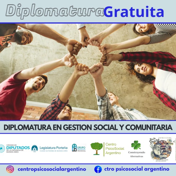 Diplomatura en Gestión Social Comunitaria y Desarrollo Sostenible – ODS. Gratuita, de Calidad y 100% Virtual. Orientado: Psicolog@s Sociales, personal de Salud y Educación. INICIO: Sábado 10 septiembre 11 hs. (se cursa dos sábados al mes, Quincenal). Finaliza: mes de noviembre. 3 meses de cursad, con trabajo integrador Final (Aula sincrónica). Equipo Docentes de Primer … Sigue leyendo Diplomatura en Gestión Social Comunitaria y Desarrollo Sostenible – ODS.