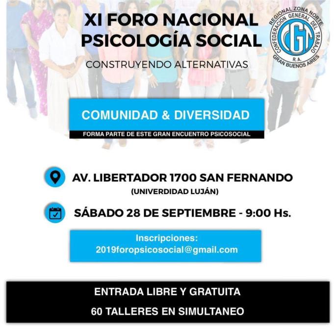 XI FORO NACIONAL DE Psicología Social, contamos con el apoyo del Secretariado General de la CGT
