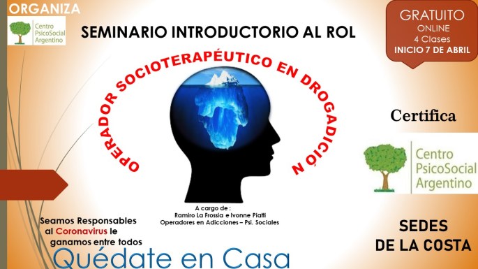 Te presentamos un nuevo💜SEMINARIO GRATUITO -.VIRTUAL Ampliando la oferta academica de contingencia el Centro Psicosocial Argentino junto a las 🔰 Sedes de la Costa de CPSA y Escuelas Construyendo Alternativas organizan y certifican el Curso Introductorio al Rol del 📕 "Operador Socioterepéutico en Drogadicción". Como siempre las🍀 Inscripciones y consultas se hacen al mail especifico … Sigue leyendo SEMINARIO GRATUITO -VIRTUAL Curso Introductorio al Rol del «Operador/a Socioterepéutico en Drogadicción»