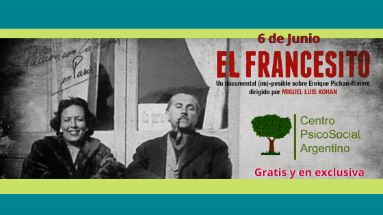 ❤Un Regalo hermoso para Vos. 🍀 Para Tod@s los Estudiantes y Trabajador@s de la Psicología Social y Salud Mental del País. 🍀 El sábado 6 de junio te enviamos vía e-mail GRATIS la Película “El Francesito” (Documental sobre la Vida de Enrique Pichón Riviere) 👉Anotate completando este formulario https://forms.gle/Va9CdjU5MRcg4gyv6 🍀 En forma GRATUITA, Gracias al … Sigue leyendo El Francesito